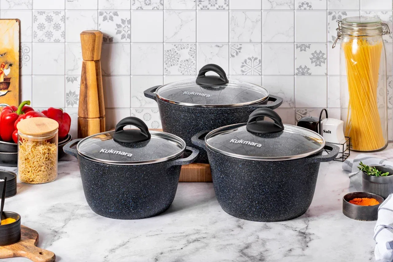 Необходимое количество кастрюль в первую очередь зависит от того, сколько блюд одновременно вам нужно приготовить. Часто для небольшой семьи до 4 человек для приготовления первых или вторых блюд бывает достаточно и одной кастрюли. Например, в качестве универсального решения подойдут кастрюли объемом 3л или 4л от ТМ Kukmara – в них можно и варить, и тушить; они отлично подходят для приготовления каш, плова, варки макарон  и т.д..