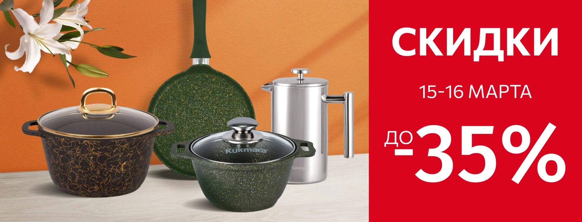 -30% на чайники, френч-прессы, наборы кухонных принадлежностей, наборы столовых приборов.